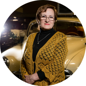 Гид-экскурсовод музея «Ретро-Гаражъ» Открытый и веселый человек с активной жизненной позицией. Работала учителем истории на протяжении 38 лет. Профессионально занимается экстремальным спортом. Мечтает собрать собственную коллекцию ретро-автомобилей. В свободное время любит заниматься картингом.